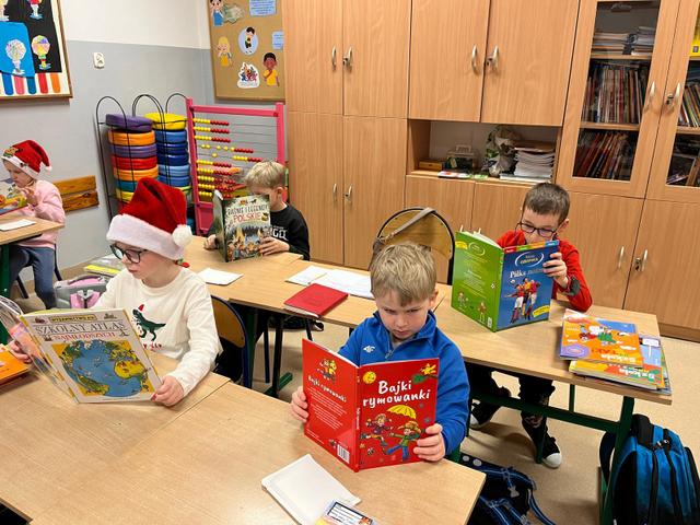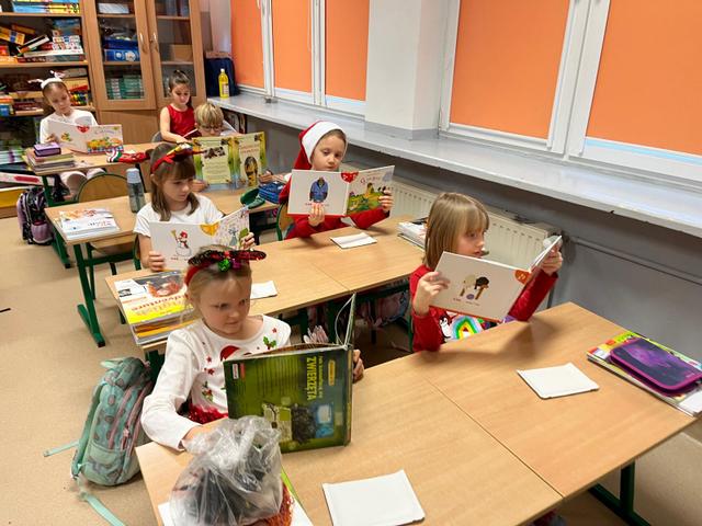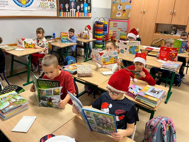Mikołajki klasy I z książką