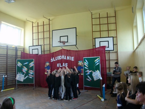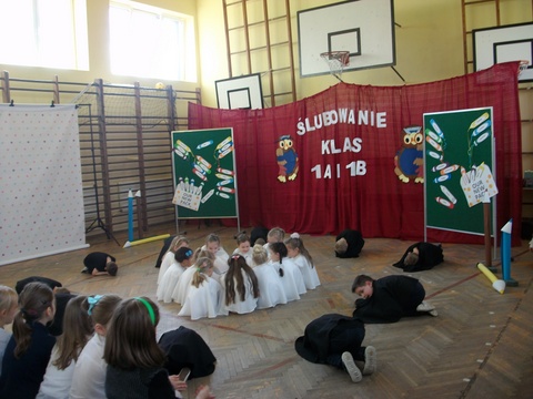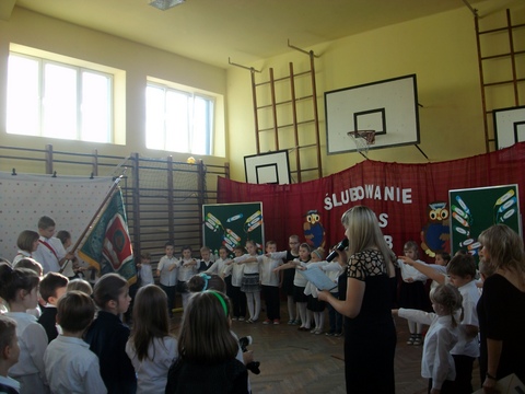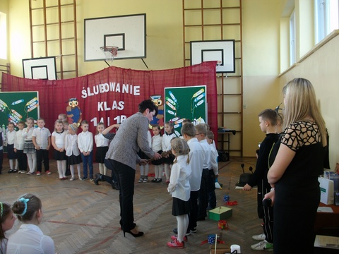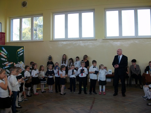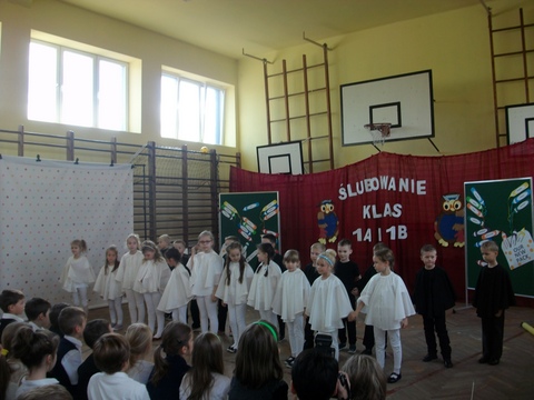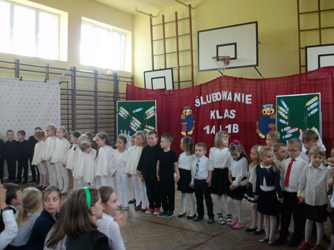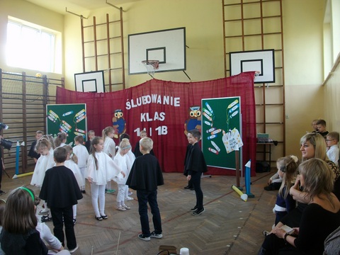 29 listopada był dniem szczególnym dla naszych najmłodszych uczniów. Zgodnie ze szkolną tradycją uczniowie klas pierwszych złożyli ślubowanie w obecności zaproszonych gości, nauczycieli oraz swoich kolegów i koleżanek z klas drugich i trzecich. Z wielkim przejęciem przygotowywali się do pierwszego występu pod kierunkiem swoich Wychowawczyń. W efekcie mogliśmy zobaczyć piękny występ z recytacją, śpiewem i tańcem. Na pamiątkę tego wydarzenia pierwszoklasiści otrzymali wiele upominków, a rodzice przygotowali dla swoich pociech słodki poczęstunek.