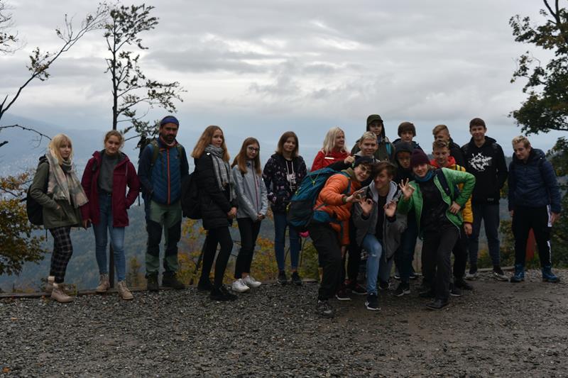 W środę 9 października klasa 8 wybrała się na wycieczkę w Beskid Śląski. Przy zachmurzonym niebie, momentami gęstej mgle, ale bez minusowej temperatury wjechaliśmy kolejką gondolową na szczyt Szyndzielni (1028 m n.p.m.) skąd, pod wodzą przewodnika górskiego, Pana Grzegorza, udaliśmy się na wyprawę na nieodległy szczyt Klimczoka (1117 m n.p.m.). Odpoczynku zaznaliśmy w schronisku Klimczok, co ciekawe, znajdującym się nie na szczycie góry Klimczok, ale na stoku Magury. Tam też posililiśmy się i w dobrych nastrojach, przy towarzyszącym nam na horyzoncie Skrzycznym (najwyższym szczycie Beskidu Śląskiego) udaliśmy się w dół – do Szczyrku, gdzie czekał na nas autokar.