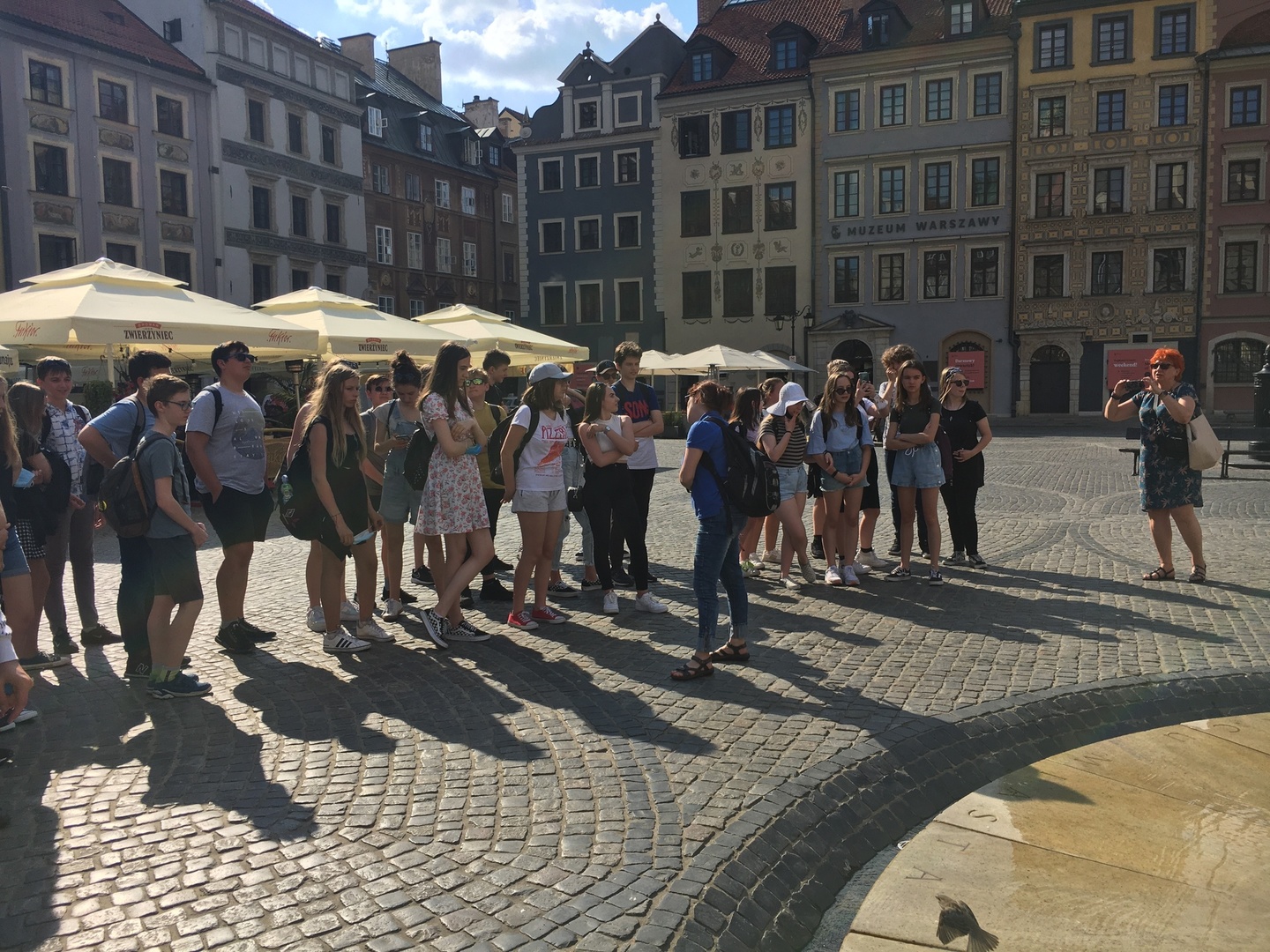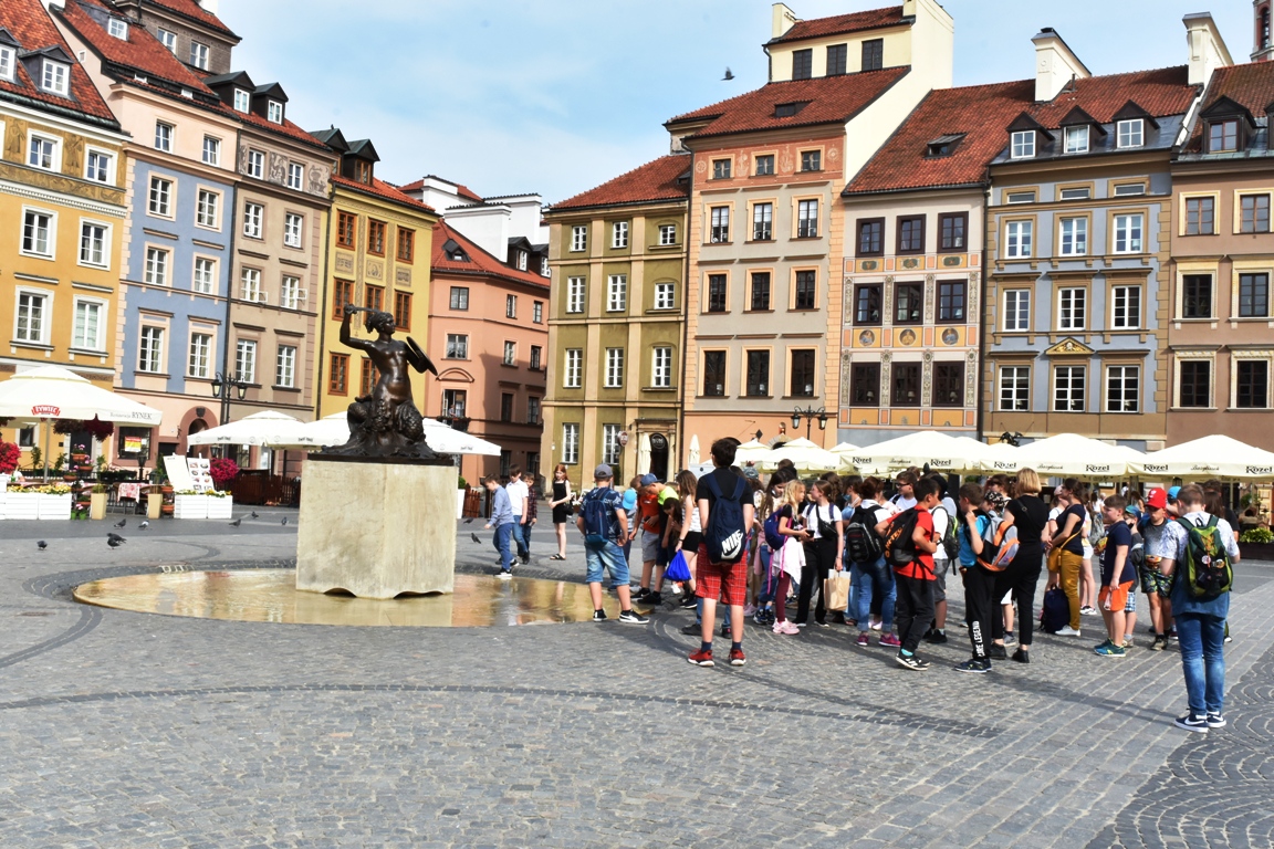 Na zakończenie odbyliśmy spacer po mieście. Zaczęliśmy ją od Placu Zamkowego, gdzie mogliśmy zobaczyć Zamek Królewski i Kolumnę Zygmunta III Wazy. Następnie udaliśmy się na Stare Miasto, gdzie podziwialiśmy piękne kamienice i najbardziej rozpoznawalny symbol polskiej stolicy - Warszawską Syrenkę.