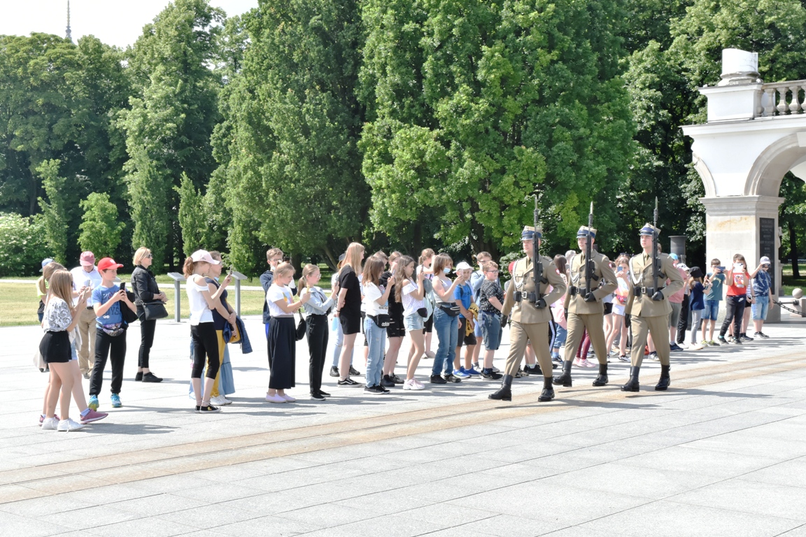 Pierwszym punktem programu było przejście na Plac Piłsudskiego, gdzie przy Grobie Nieznanego Żołnierza mieliśmy okazję zobaczyć, jak odbywa się zmiana warty honorowej.