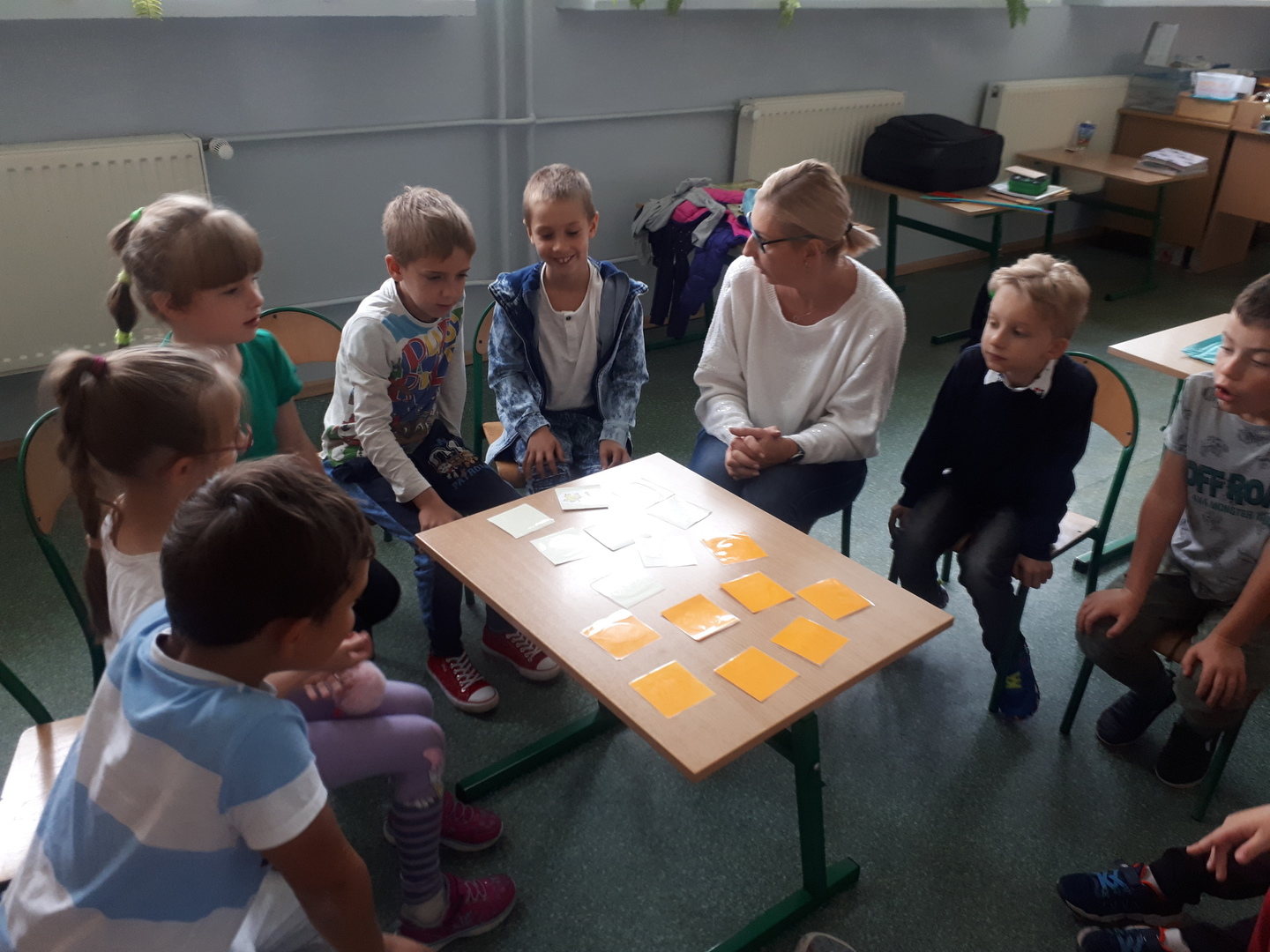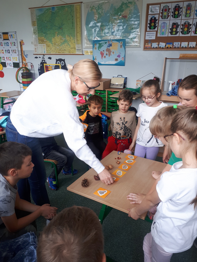 Pani Iwona poprowadziła zajęcia z języka niemieckiego w dwóch klasach pierwszych – w klasie 1a oraz w klasie 1b. Tematem przewodnim była jesień. Poniżej przedstawiamy zdjęcia z zajęć.
