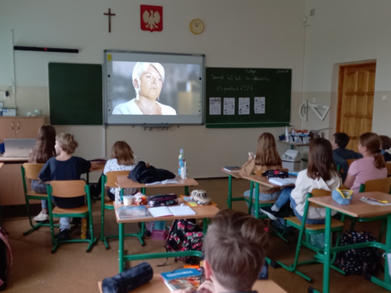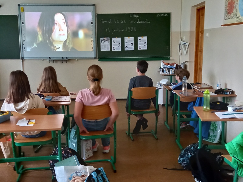 W ramach realizacji projektu Pamięci81 uczniowie na lekcjach historii obejrzeli film dokumentalny o stanie wojennym w Polsce pod tytułem „Nie zabierajcie mamy”. W zajęciach, które miały miejsce w dniach od 21 do 29 października br. uczestniczyli uczniowie klasy 5, 7a, 7b i 8.