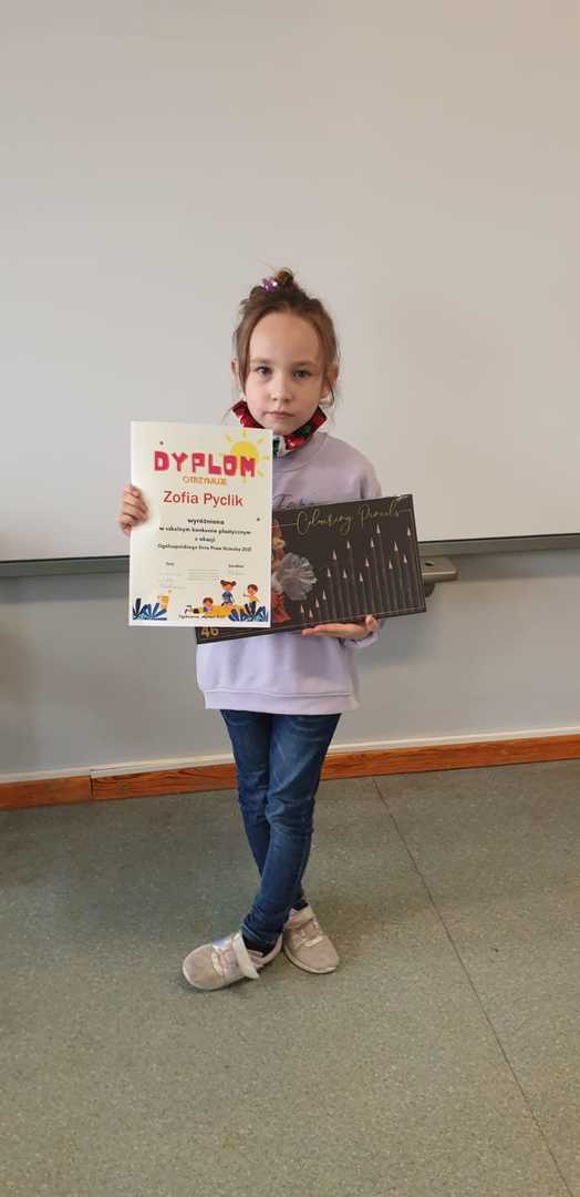 Ogólnopolski Dzień Praw Dziecka to święto które pełni ważną rolę. W ramach obchodów przeprowadzono zajęcia poszerzające świadomość i wiedzę uczniów o tym, jakie prawa im przysługują oraz do kogo mogą się zwrócić, jeśli są łamane. Zajęcia stały się inspiracją do ogłoszonego konkursu. Dzieci wykazały się kreatywnością i pomysłowością. Przygotowały prace różnorodnymi technikami. Łącznie na konkurs wpłynęło dwanaście prac od uczniów klasy trzeciej oraz klas czwartych. Do etapu ogólnopolskiego zostały zakwalifikowane prace: Zosi Pyclik, Wiktorii Stanik i Kevina Webster.