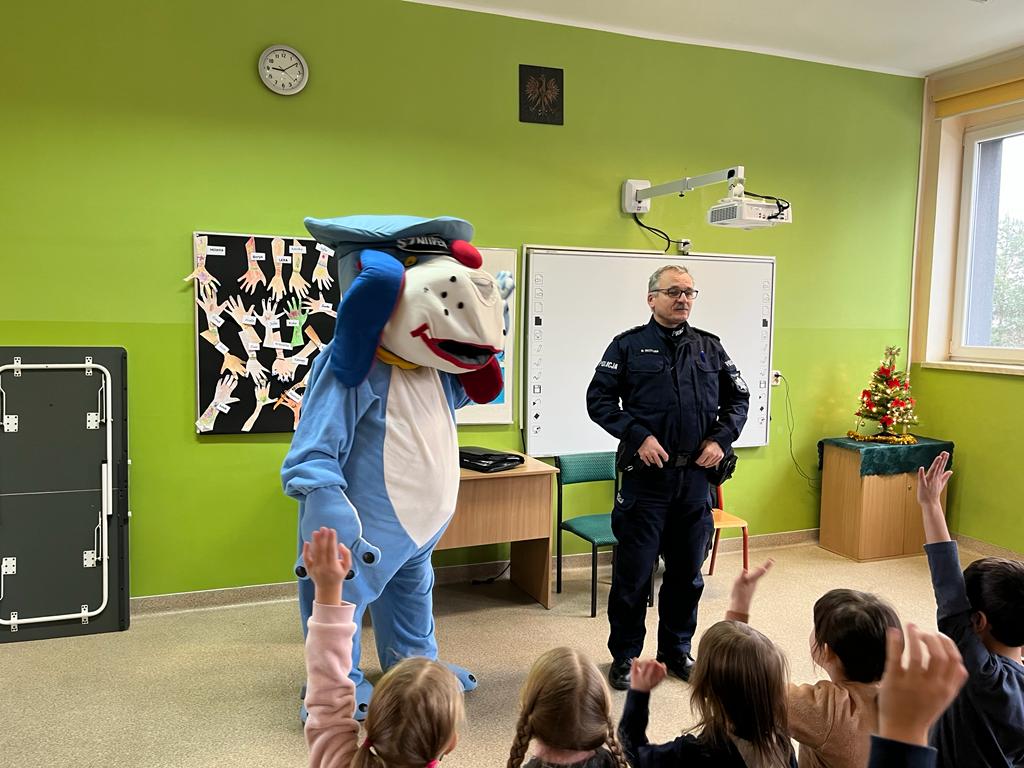 Dzisiaj - 7 grudnia - naszą szkołę odwiedzili Policjanci w towarzystwie Sznupka, psa który jest maskotką śląskiej policji.
