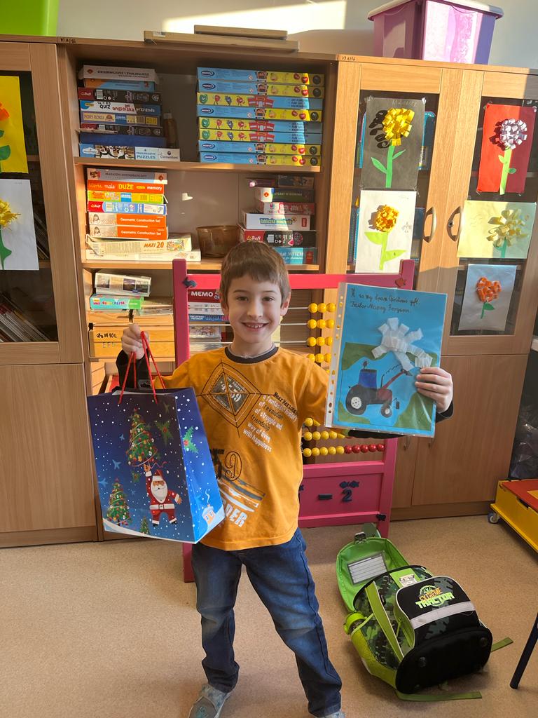 Zadaniem uczniów było wykonanie pracy plastyczno-językowej, w której mogli przedstawić świąteczny prezent swoich marzeń.