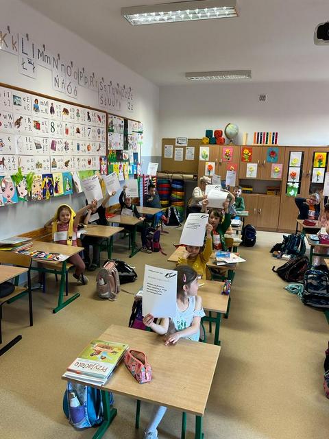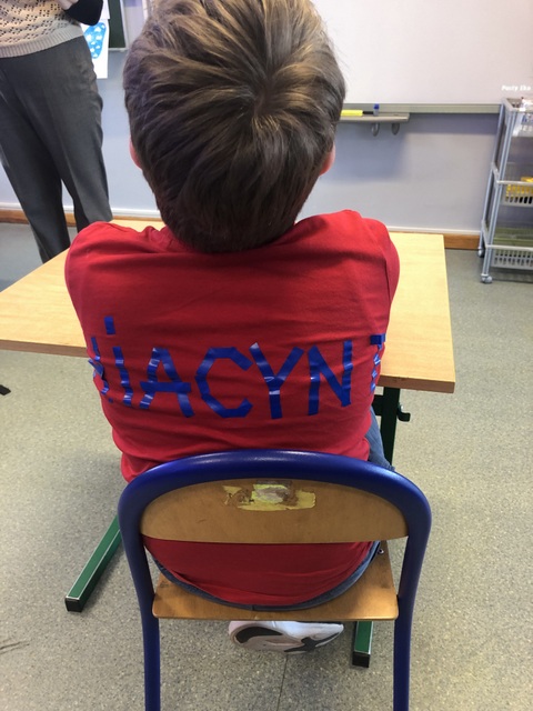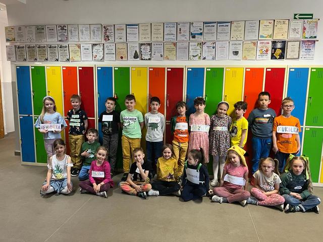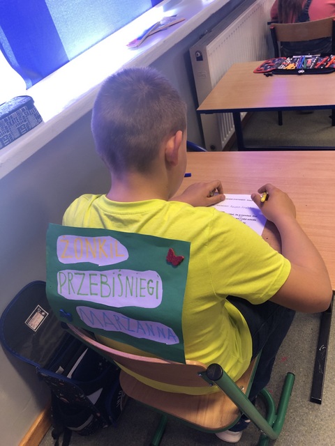W tym dniu każdy z uczniów przyszedł do szkoły w koszulce przyozdobionej słowami zawierającymi trudność ortograficzną związanymi z wiosną.