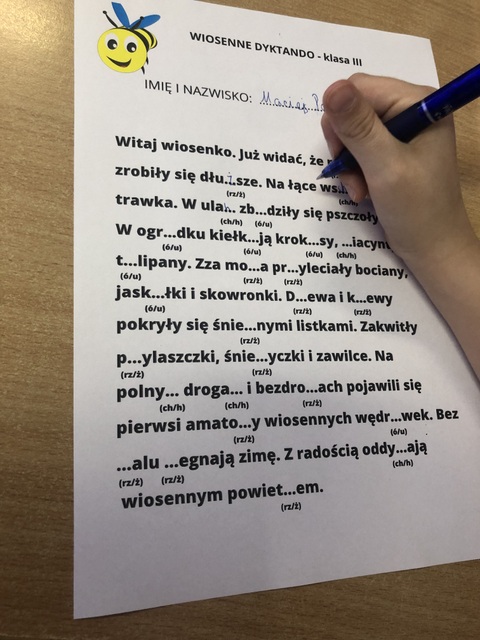 27 kwietnia uczniowie klas I - III uczestniczyli w WIOSENNYM DYKTANDZIE.