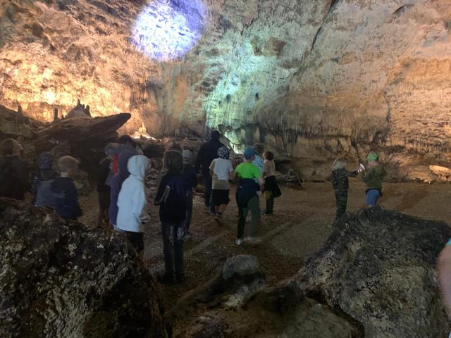 Potem przyszła kolej na przejazd do Jaskini Nietoperzowej, którą również zwiedzali pod okiem doświadczonego przewodnika.