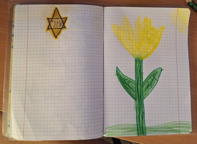 Żółte kwiaty przypominają żółtą Gwiazdę Dawida, którą Żydzi byli zmuszani nosić pod rządami nazistów.