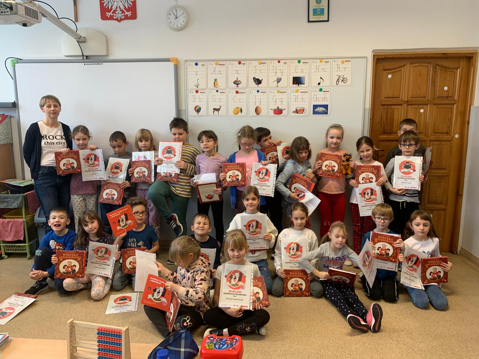W ramach kampanii społecznej Instytutu Książki „Mała książka – wielki człowiek” uczniowie klasy I otrzymali wyprawkę w postaci książki „Wnuczka antykwariusza” autorstwa Justyny Bednarek oraz dyplomy superczytelniczki i superczytelnika.