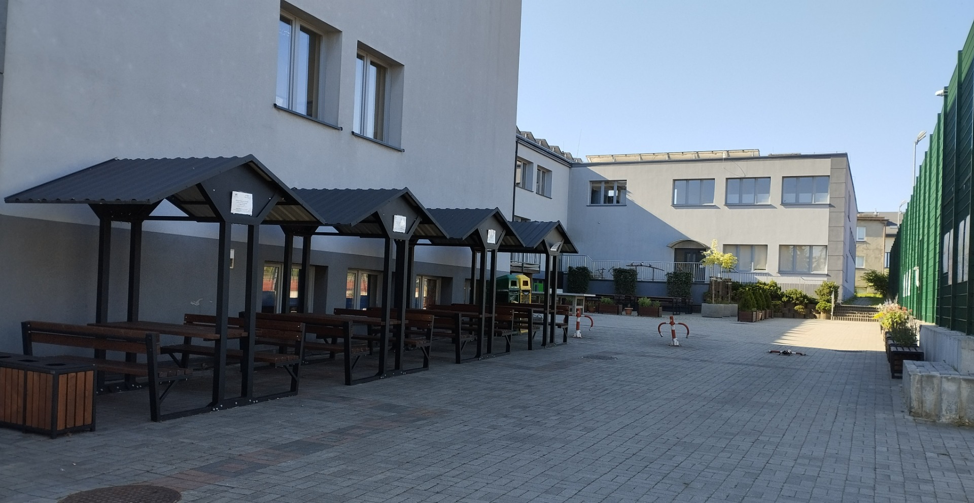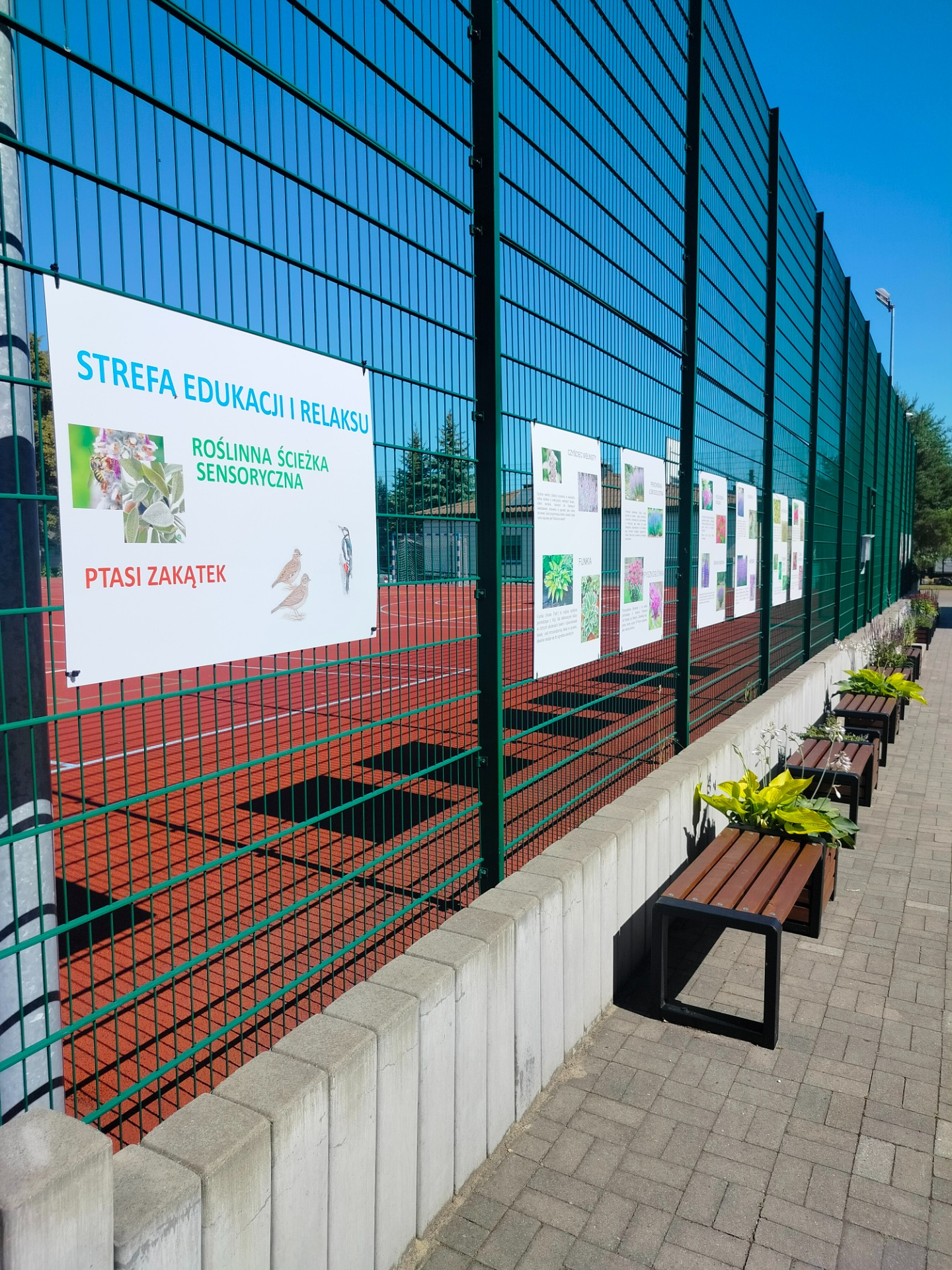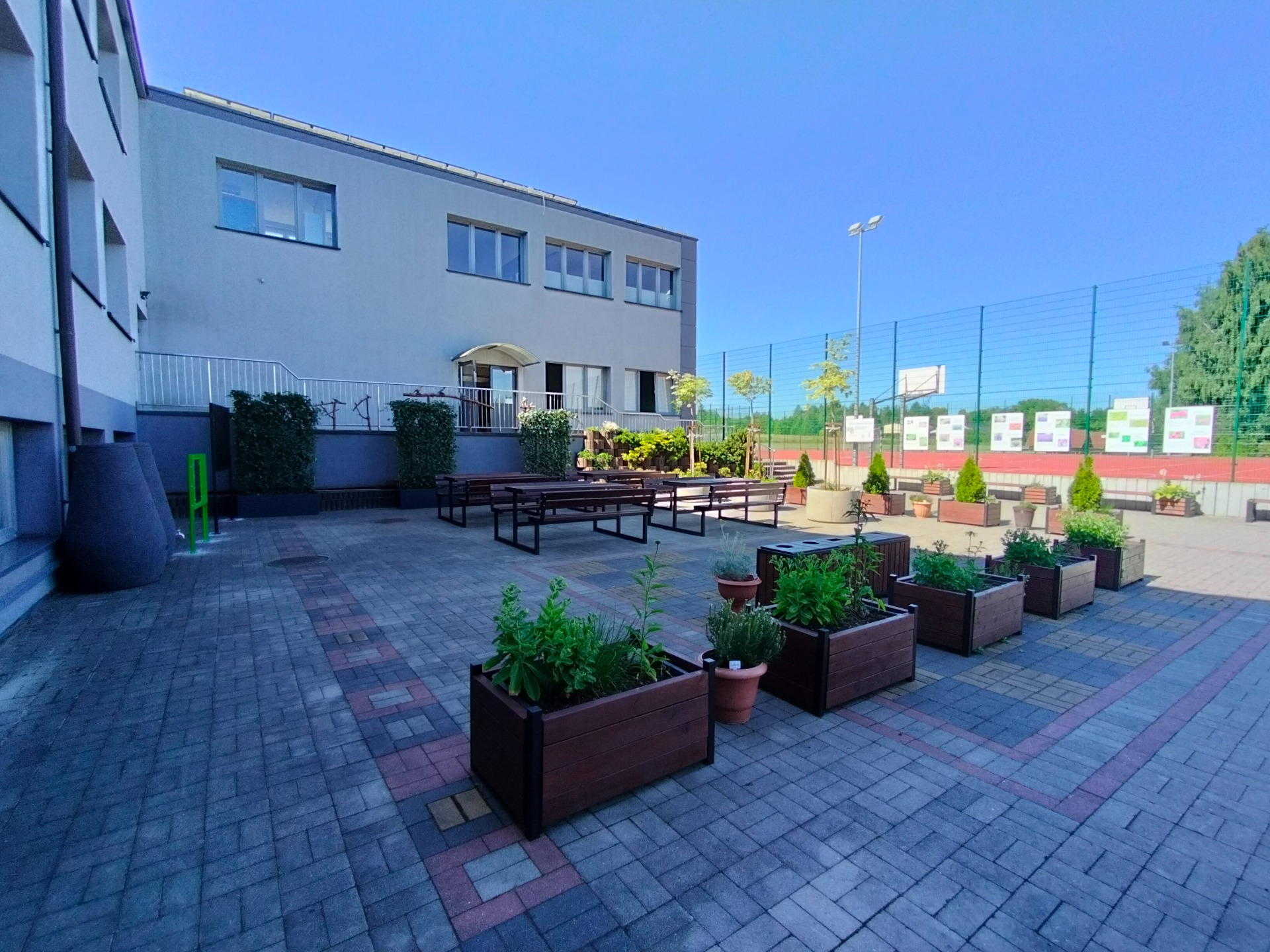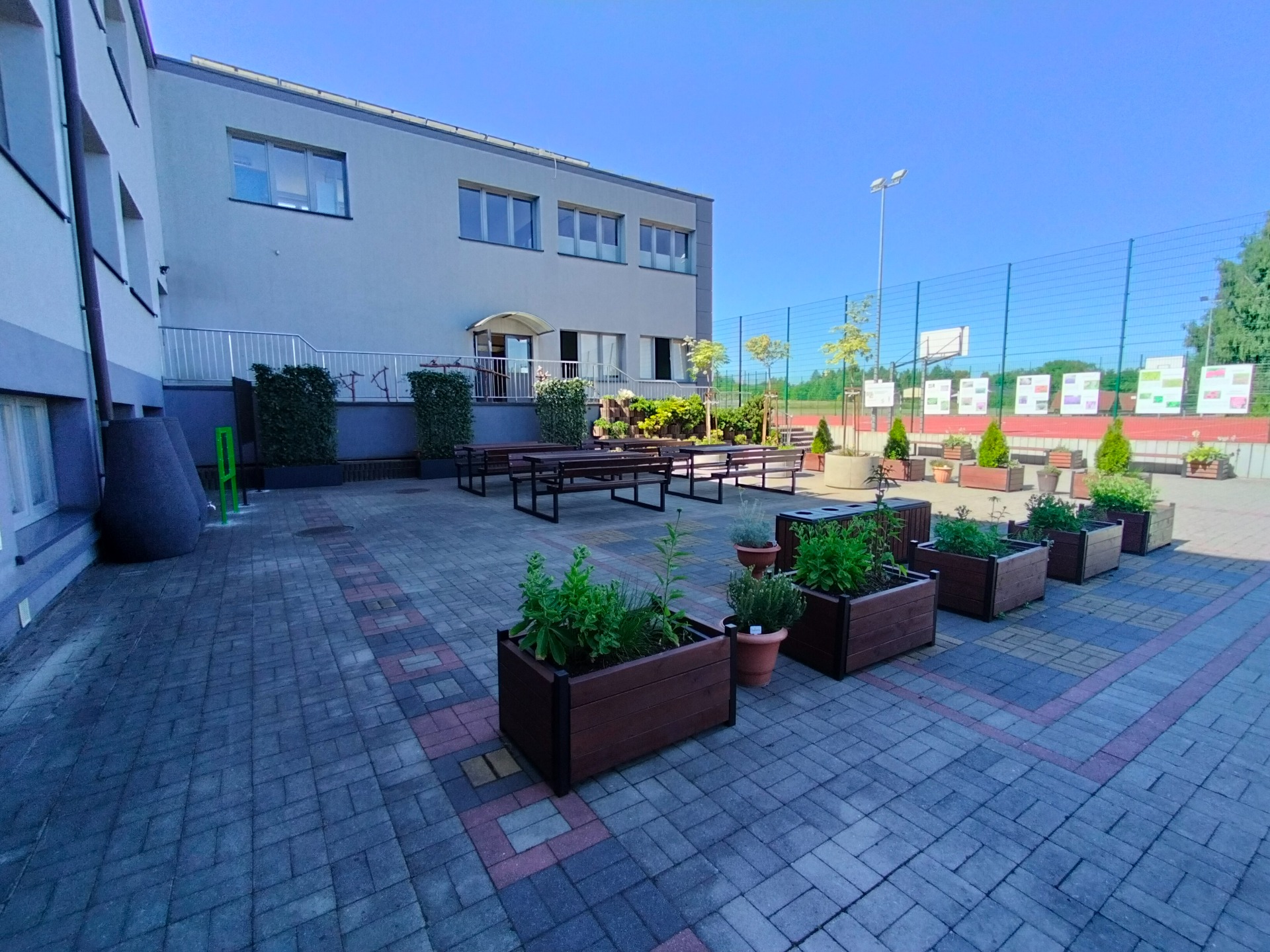 W ramach realizacji pracowni powstały 3 strefy edukacyjne. Na wybrukowanym podwórku powstała strefa relaksu i edukacji. Dotychczasowy parking został zamieniony w zieloną przestrzeń z tablicami, ławkami i altanami oraz tablicami edukacyjnymi. Zadbaliśmy również o zbiórkę wody deszczowej oraz drobny sprzęt do podlewania i uprawy roślin. Wśród zieleni pojawiły się modele ptaków w oryginalnych rozmiarach. Odrębną strefę tworzy obszar upraw, do którego udajemy się mijając łąkę kwietną ze stacją meteorologiczną w otoczeniu rabat z hortensjami. A w strefie upraw liczne smakołyki dla dzieci - owoce i warzywa, a dla zwierząt wykonane przez uczniów budki dla owadów i ptaków.