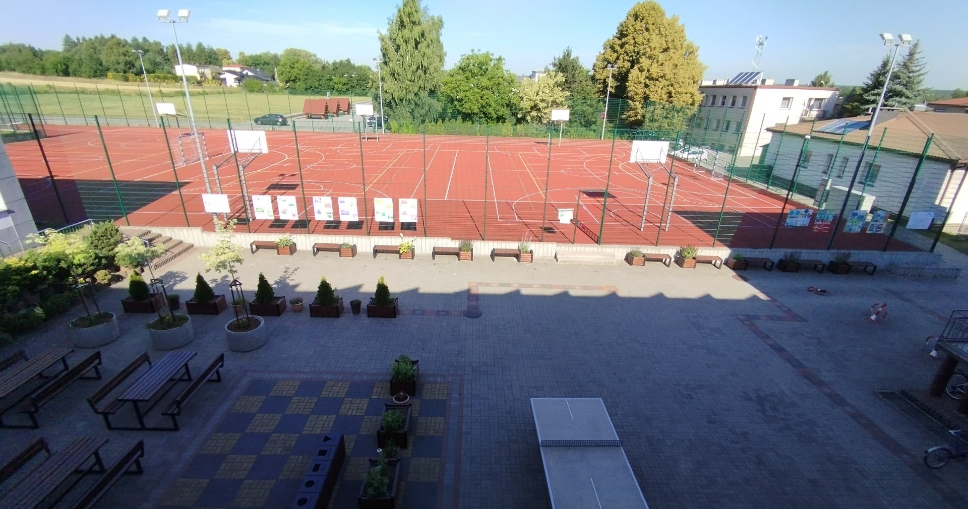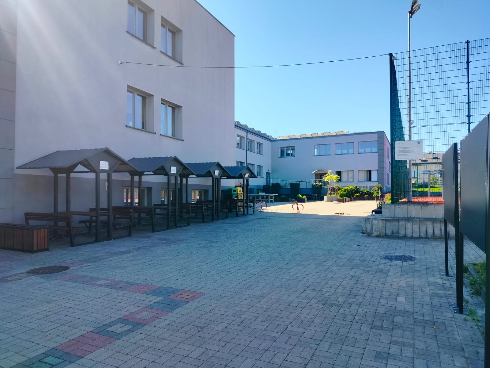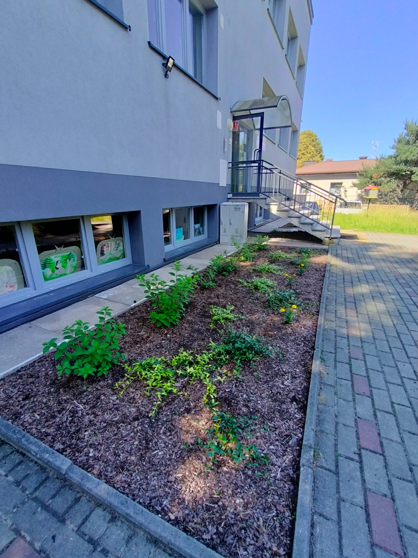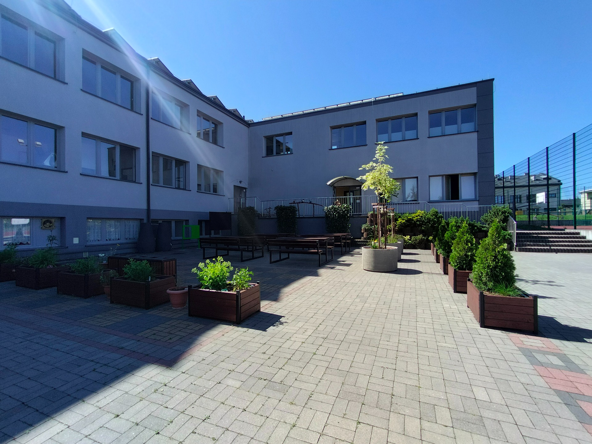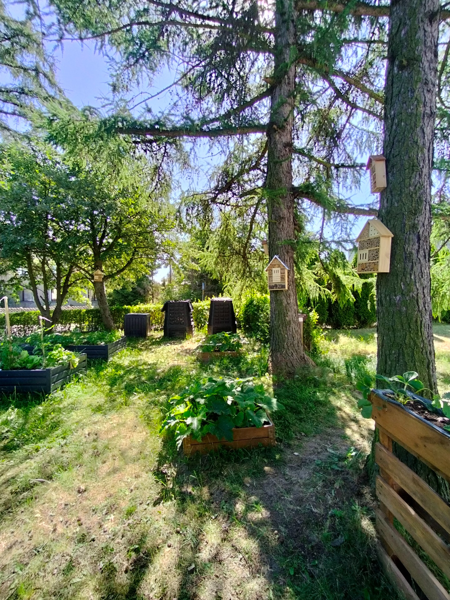 W ramach realizacji pracowni powstały 3 strefy edukacyjne. Na wybrukowanym podwórku powstała strefa relaksu i edukacji. Dotychczasowy parking został zamieniony w zieloną przestrzeń z tablicami, ławkami i altanami oraz tablicami edukacyjnymi. Zadbaliśmy również o zbiórkę wody deszczowej oraz drobny sprzęt do podlewania i uprawy roślin. Wśród zieleni pojawiły się modele ptaków w oryginalnych rozmiarach. Odrębną strefę tworzy obszar upraw, do którego udajemy się mijając łąkę kwietną ze stacją meteorologiczną w otoczeniu rabat z hortensjami. A w strefie upraw liczne smakołyki dla dzieci - owoce i warzywa, a dla zwierząt wykonane przez uczniów budki dla owadów i ptaków.