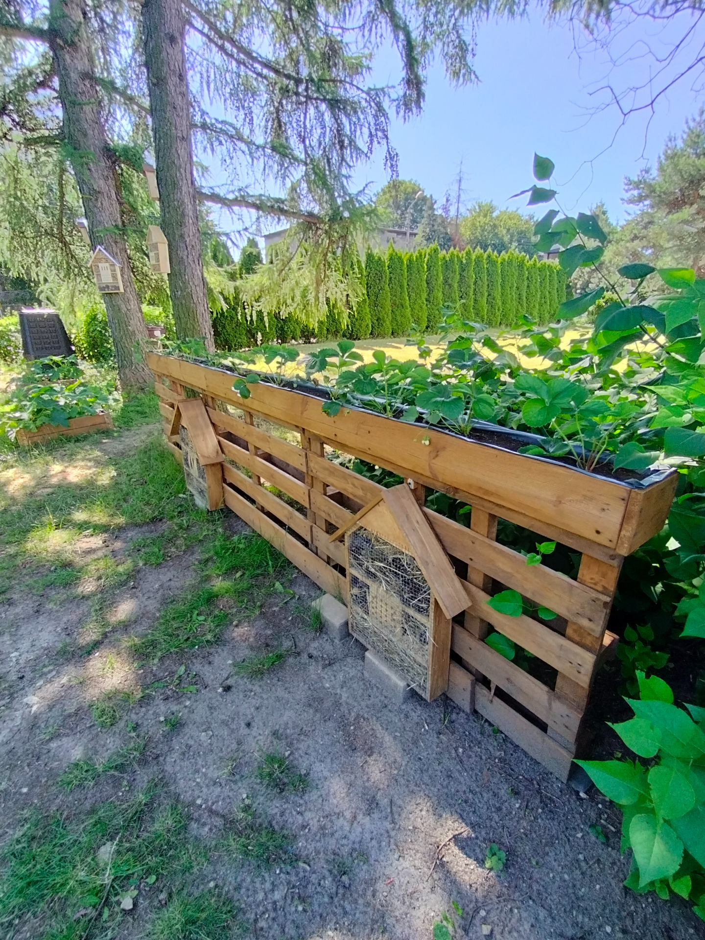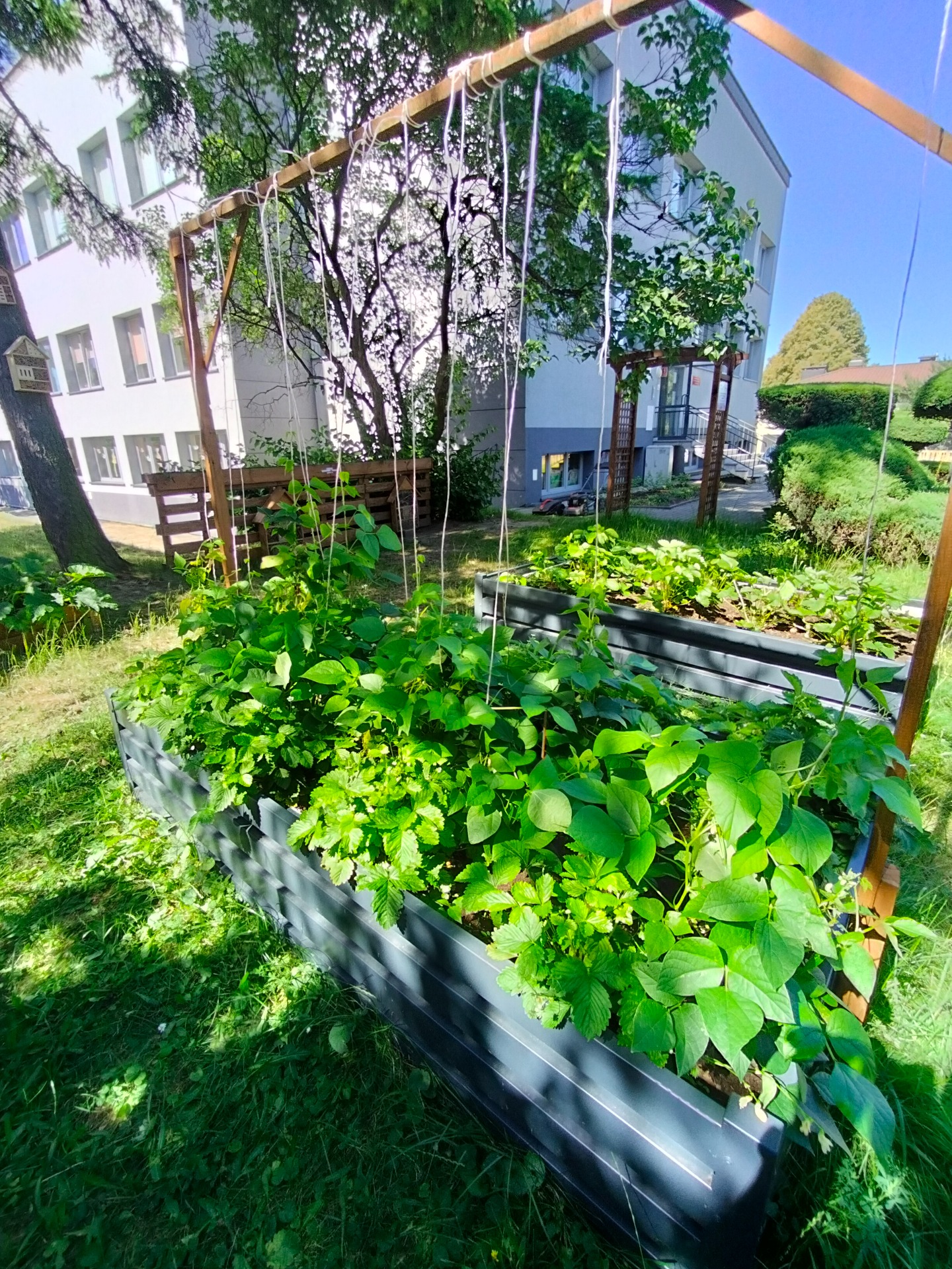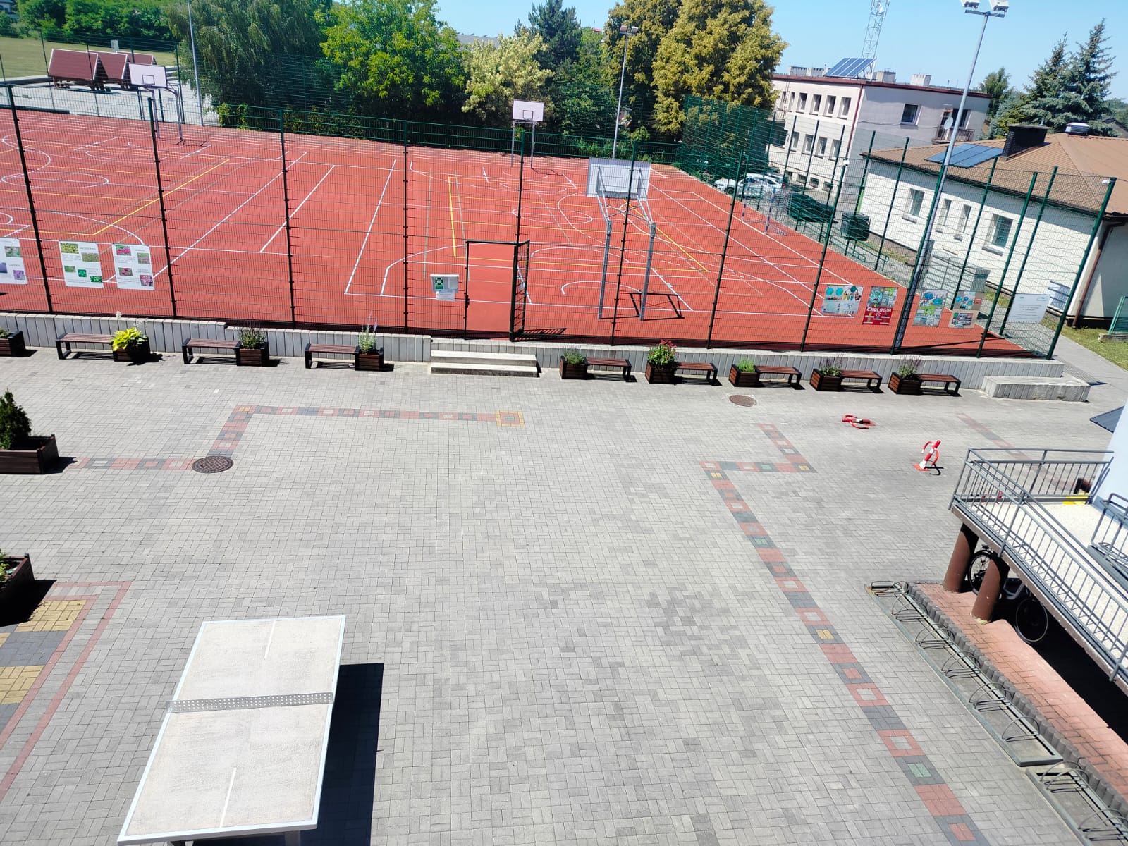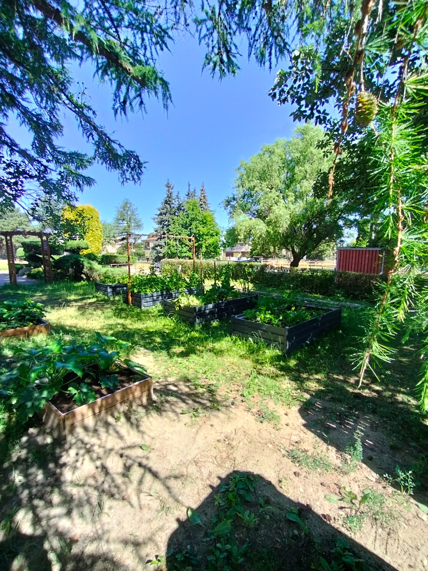 W ramach realizacji pracowni powstały 3 strefy edukacyjne. Na wybrukowanym podwórku powstała strefa relaksu i edukacji. Dotychczasowy parking został zamieniony w zieloną przestrzeń z tablicami, ławkami i altanami oraz tablicami edukacyjnymi. Zadbaliśmy również o zbiórkę wody deszczowej oraz drobny sprzęt do podlewania i uprawy roślin. Wśród zieleni pojawiły się modele ptaków w oryginalnych rozmiarach. Odrębną strefę tworzy obszar upraw, do którego udajemy się mijając łąkę kwietną ze stacją meteorologiczną w otoczeniu rabat z hortensjami. A w strefie upraw liczne smakołyki dla dzieci - owoce i warzywa, a dla zwierząt wykonane przez uczniów budki dla owadów i ptaków.