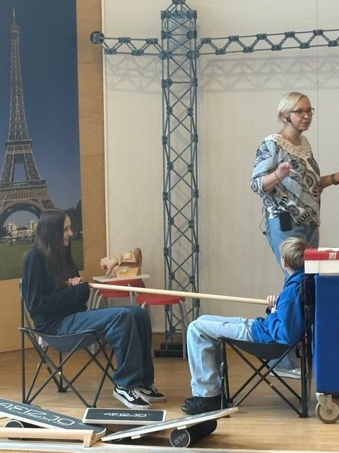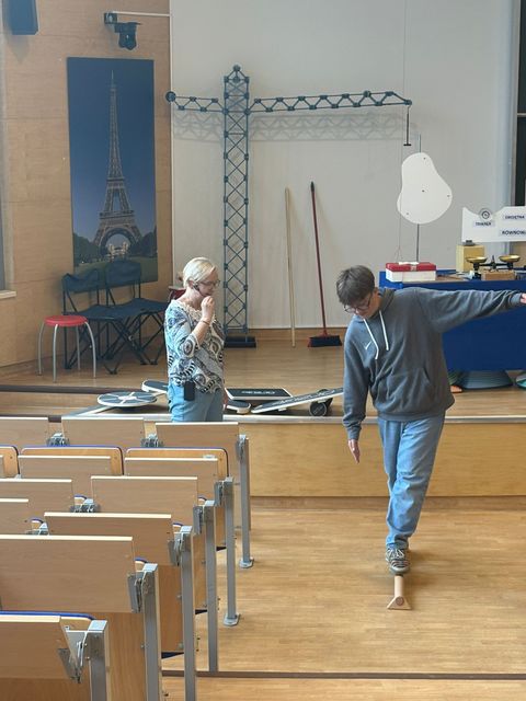 Z kolei prezentacja Jak nie dać się wyprowadzić z równowagi? w przystępny i interaktywny sposób wprowadzała uczniów w świat fizyki, ucząc zasad równowagi i stabilności różnych konstrukcji.