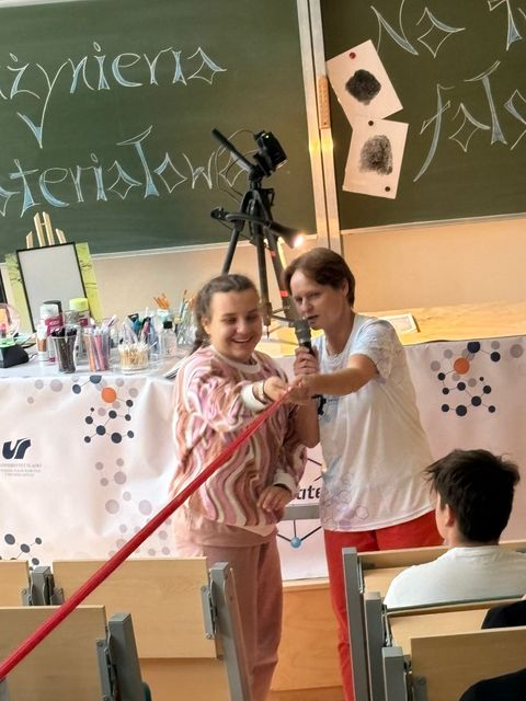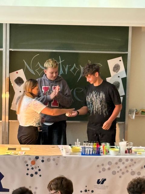 23 września 2025r. uczniowie klas siódmej i ósmych wzięli udział w pokazach i wykładach organizowanych przez Uniwersytet Śląski w ramach projektów popularyzujących naukę.